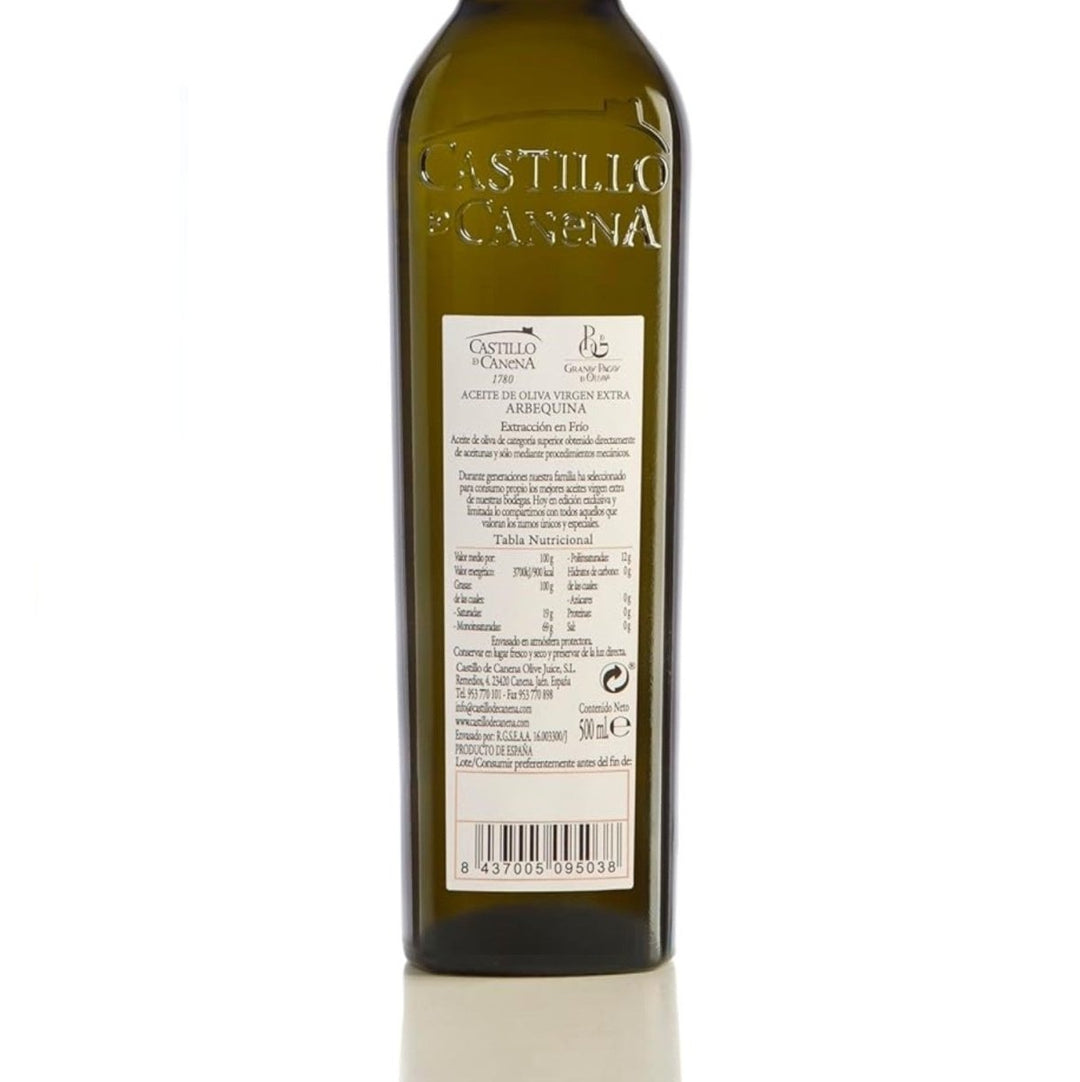 Castillo de Cañena ist ein Familienbetrieb der Familie Vanos, der bereits seit 250 Jahren hochwertige Olivenöle erzeugt. Die Firma nennt sich nach der Burg, die sich an den Bergen der Gemeinde Cañena in der Provinz Jaén (Andalusien) emporhebt. Von der Familienburg Castillo de Canena haben auch die Olivenöle ihren Namen. In der Nähe befinden sich die Weltkulturerbe-Städte Úbeda und Baeza. Die Olivenbäume der Farm sind zwischen den Gebirgszügen von Carzorla und Mágina im Tal Alto Guadalquivir beheimatet. Die Oliven werden zum perfekten Zeitpunkt von speziell ausgewählten Bäumen geerntet und in möglichst kurzer Zeit zur Mühle gebracht.