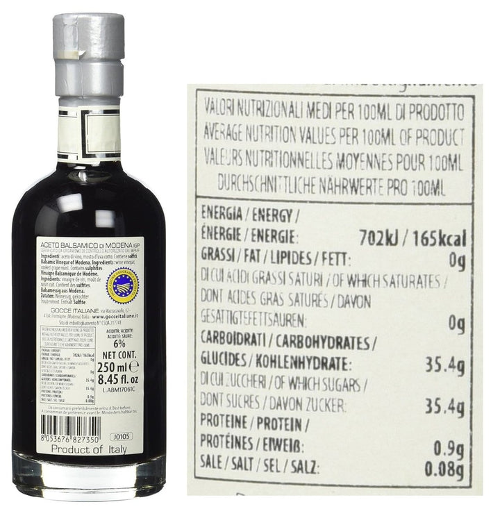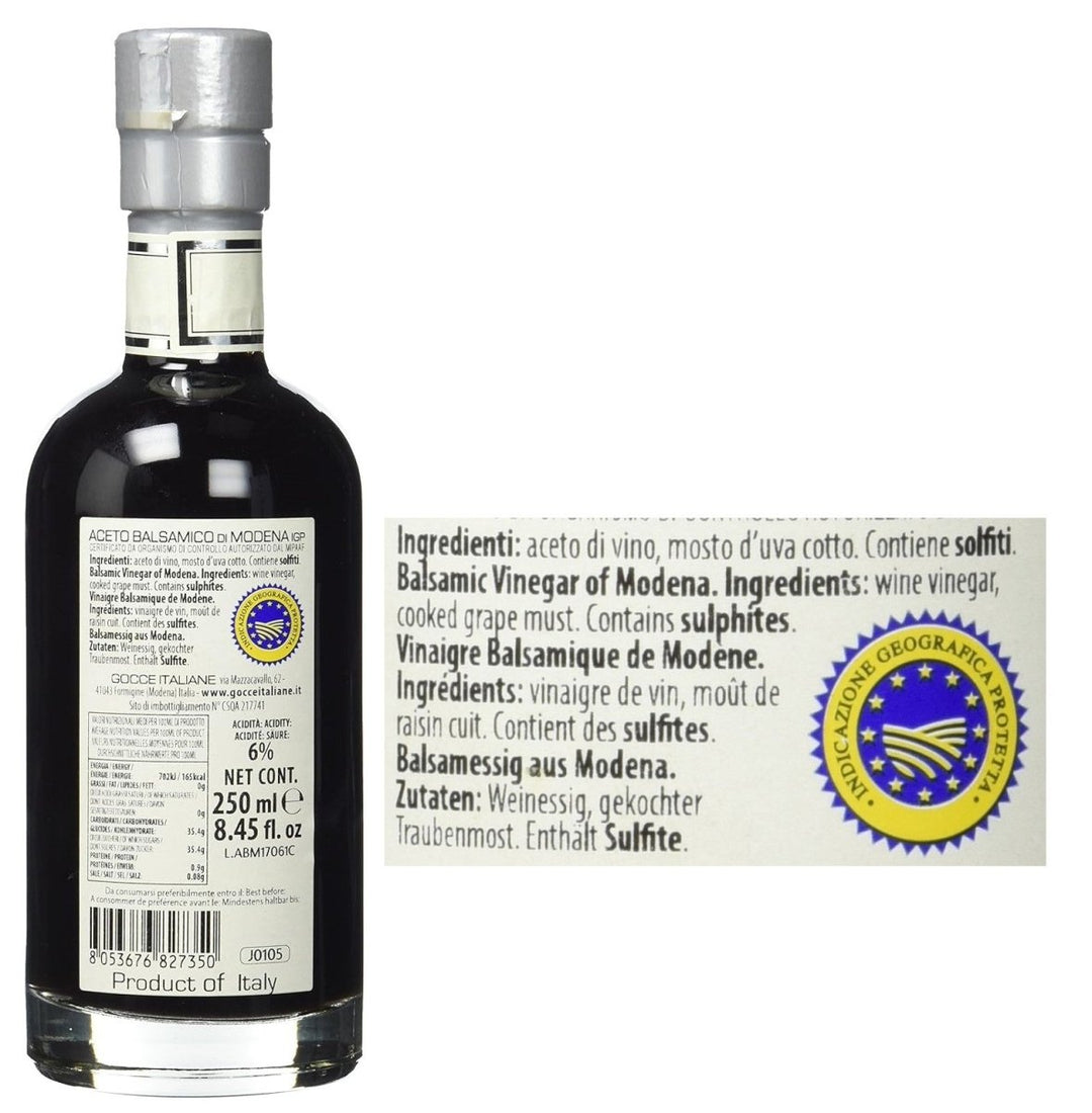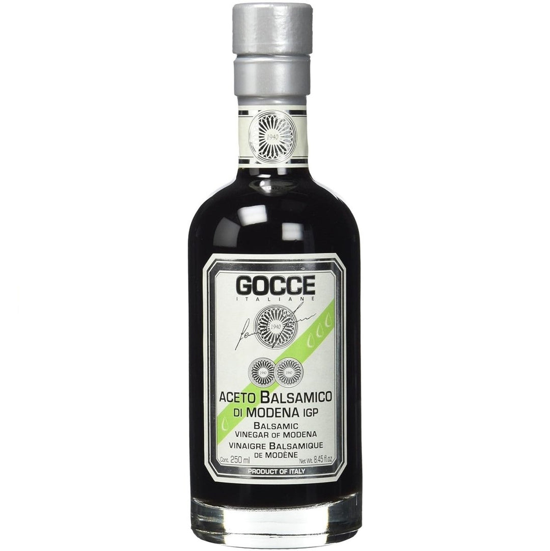 GOCCE, was übersetzt "Tropfen" bedeutet, führt die Legende eines Liebestranks fort, inspiriert durch Haute Couture Parfum, bringen sie Ihren Balsamico entsprechend bereits seit 1940 in markanten Flaschen in Form von Parfüm-Flacons heraus. Ein Portrait der unbändigen Leidenschaft, traditionseiche Geschichte und hingebungsvolle Liebe, die in jeder einzelnen Flasche und letztlich in jedem kostbaren Tropfen Balsamico von GOCCE steckt. Ihre individuelle Reifung und Umfüllung sind den Medaillen auf dem Etikett zu entnehmen. So steht eine Medaille für zwei Jahre Reifung und zwei Umfüllungen (übersetzt Travasi).